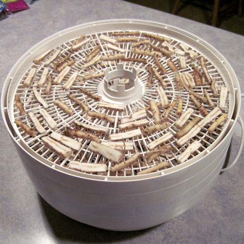 Since the root system penetrates so deeply into the soil, digging must also be deep to recover both the fully sized, usable root and set roots which are as long as possible. Removing as much of the root system as possible also minimizes the problem of weed horseradish plants in the following year's crop in the field.